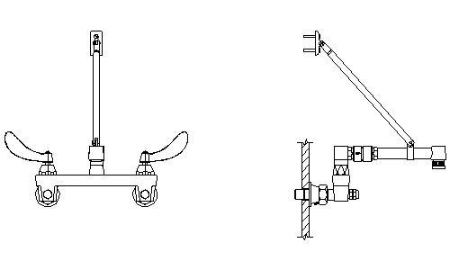 Double Handle Ceramic Disc Wallmount Faucet with Blade Handles Long Spout with Brace and Body Mounted Double Check Vacuum Breaker from the Commercial SeriesHeavy duty cast brassPolished chrome plated8" Center