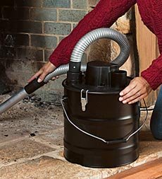Ash Vac. Our Ash Vac makes fireplace cleanup a snap. It's compact for easy portability, holds four gallons of ash, and comes with a 3' stainless steel hose and metal filter and a generous 15' power cord. The 6-amp motor sucks up ashes quickly, while the Hepa filter provides 98% filtration efficiency. It's easy to empty, too simply unclip the lid and pour. Includes very helpful instructions on use and cleaning. Not a hot ash vac. 800W. Black. Size 13" dia. x 14-3/4"H